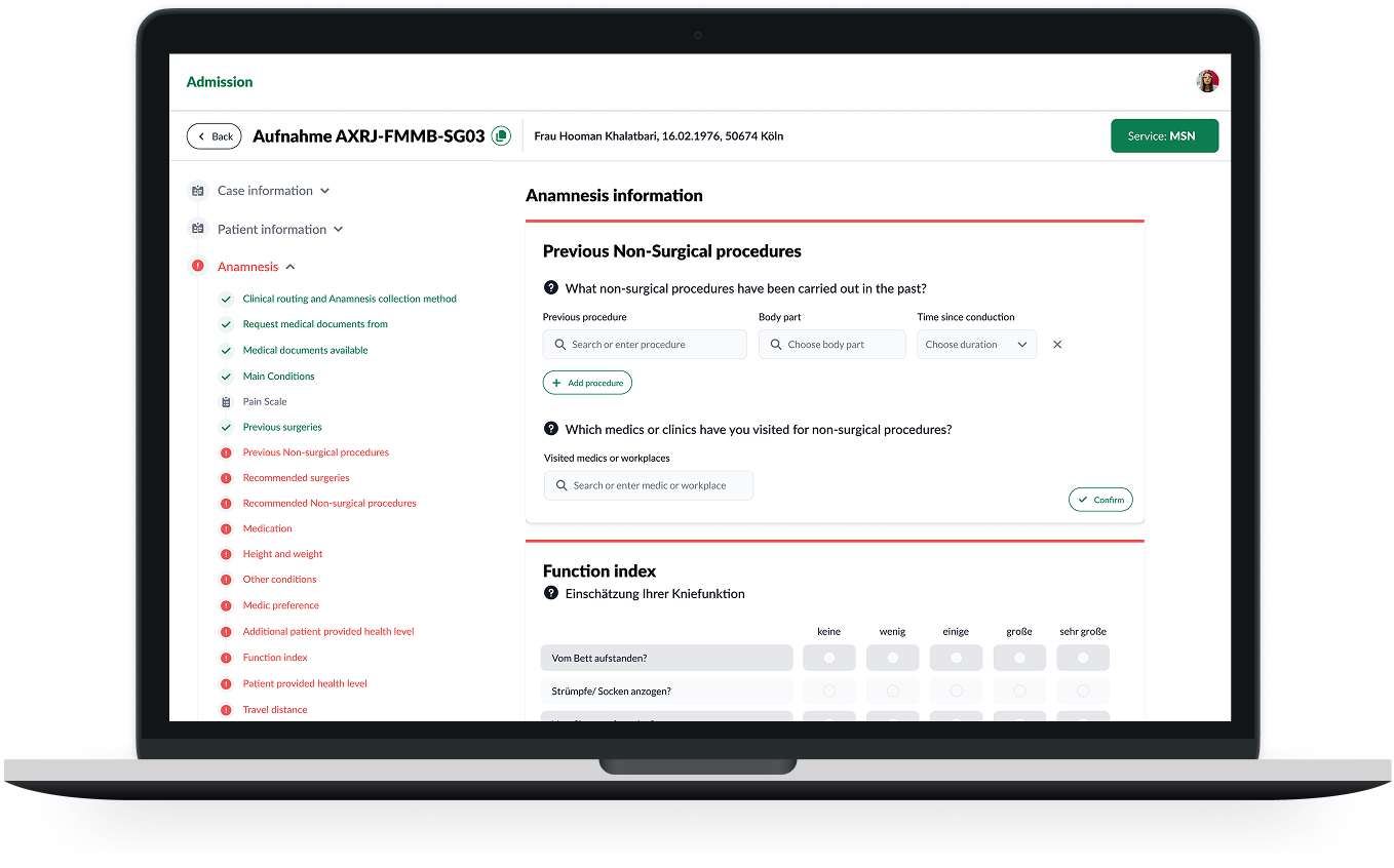 Capture all necessary patient and anamnesis information to facilitate the Medical Triage process.